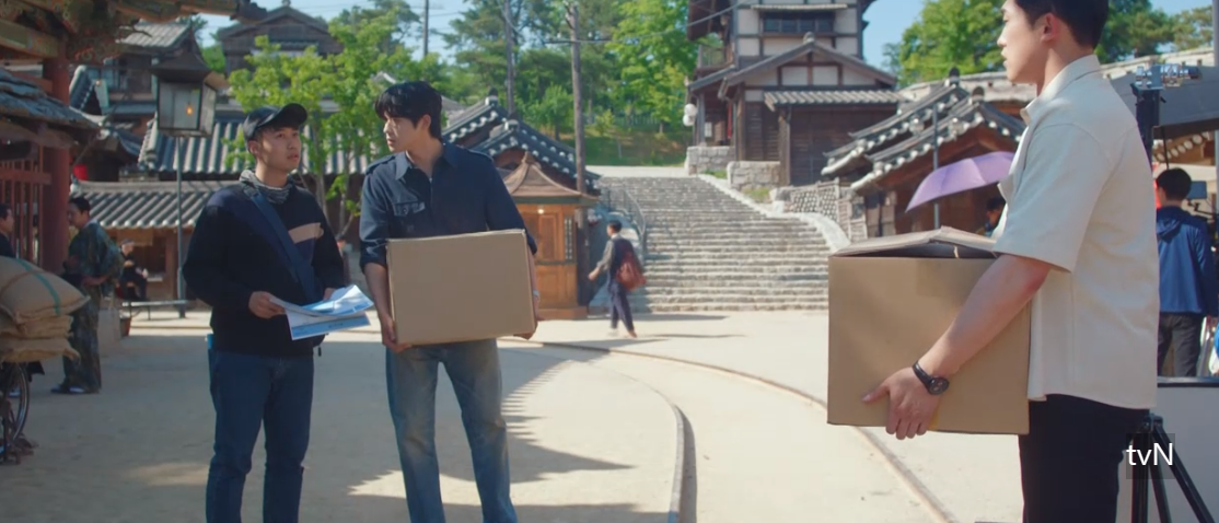 세트장에 일하러 온척 아정 주위를 맴도네요.